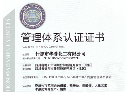 什邡市華蓉化工有限公司原名什邡華蓉科技有限責(zé)任公司,位于磷礦資源豐富的四川省什邡市,距成都60公里,交通運輸便利,是一家專業(yè)生產(chǎn)、研發(fā)精細(xì)磷化工系列產(chǎn)品的大型生產(chǎn)企業(yè)。生產(chǎn)設(shè)備先進(jìn),技術(shù)研發(fā)團隊強大,現(xiàn)公司占地面積約30000平方米,擁有5條生產(chǎn)線,主要生產(chǎn)大量元素水溶肥、磷酸二氫鉀、磷酸二氫銨、磷酸氫二銨、硝酸鉀、磷酸脲以及磷酸,年總產(chǎn)量為100000噸以上。公司資質(zhì)齊全,管理規(guī)范,已取得安全生產(chǎn)許可證、ISO9001:2015質(zhì)量管理體系認(rèn)證、食品生產(chǎn)許可證、工業(yè)產(chǎn)品生產(chǎn)許可證、自營進(jìn)出口經(jīng)營權(quán)進(jìn)出口證書以及出口歐盟國家部分產(chǎn)品的REACH證書。